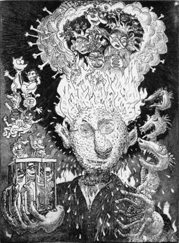 Artisto: Es saugt Dem Zwerg bleibt die Hingabe an die »Res Kunst!« sowie deren Ausführung. Beim Tun stellen sich zu lösenden Bildvorstellungen ein. Tuend erschafft der Zwerg sein Zwergwerk. Artista unterbricht: Pathos Zkkckik: Artisto: Artista: Acht-äugiges Spinnnendenken im Brunnen: Pathos Zkkckik: Artisto: Artista: Pathos Zkkckik: Artista: Artisto: Artista: |